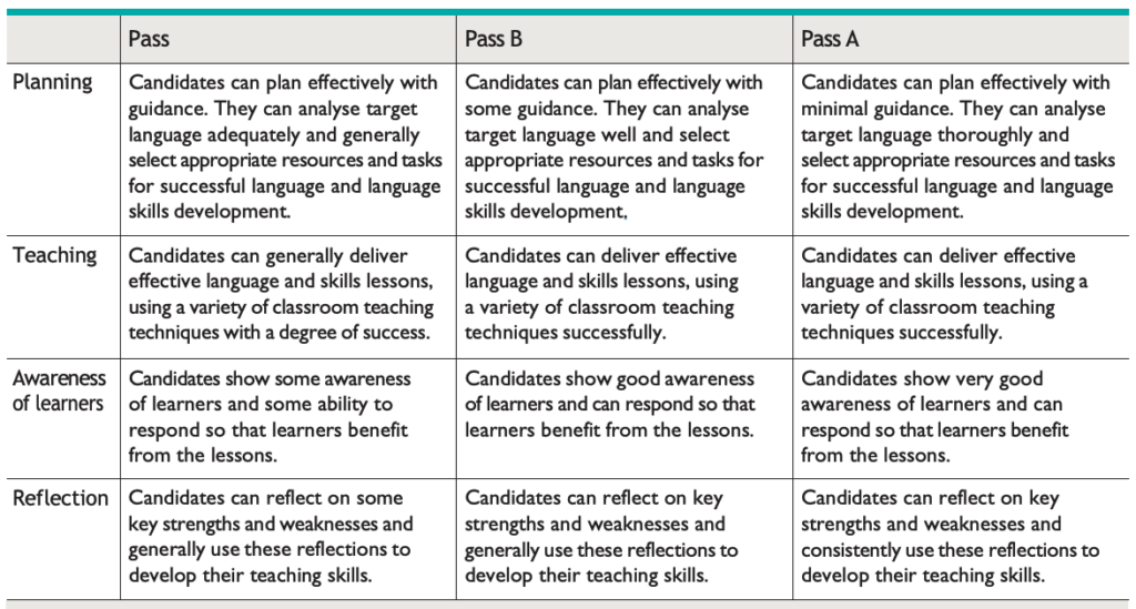 - Tham khảo Syllabus của CELTA, đặc biệt là phần hướng dẫn cho điểm.